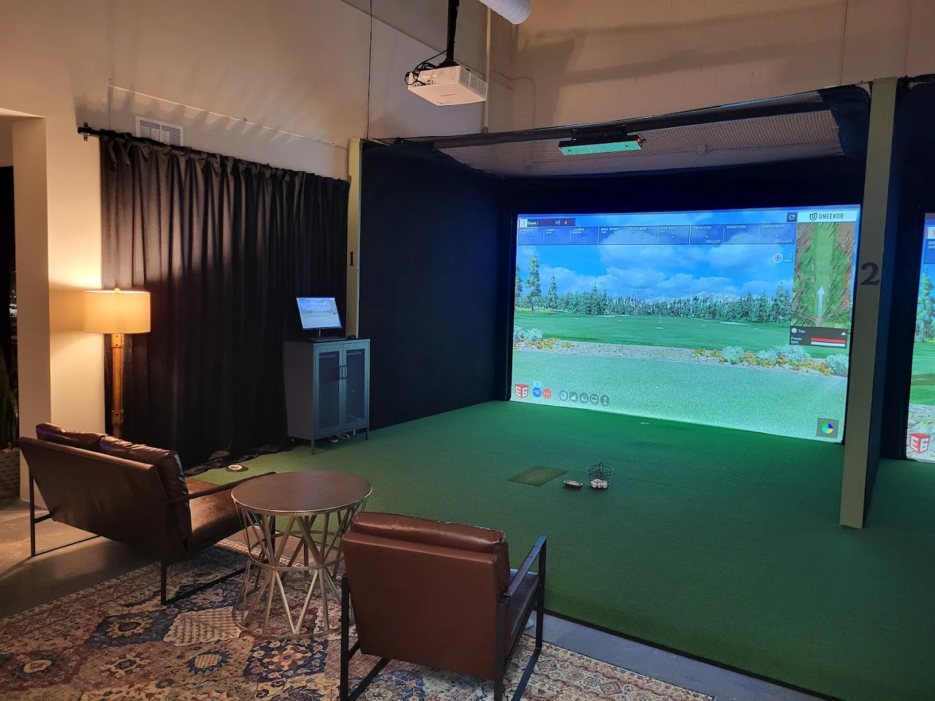 Owner Sean Cabrey is friendly and knowledgeable, and he explained that customer usage varies by season. During the quieter summer months, the clientele tends to comprise golfers interested in game improvement with swing and ball-striking data the primary focus. In winter, however, the mix shifts toward players looking to enjoy the thousands of digitally replicated golf courses available, including many famous layouts from around the world.